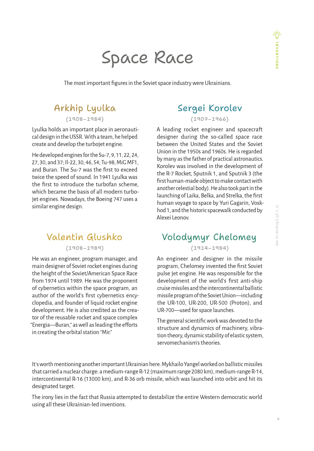 Annotation: Countless surprises. One land at the heart of it all. This book reveals the lives of extraordinary individuals who were either born in, lived in, or were shaped by the land we now call Ukraine. Did you know the man who deciphered the Mayan script studied in Kharkiv? That the discoverer of the first antibiotic walked the streets of Odesa? Or that a composer from Kremenchuk holds four Oscars for Best Original Score? You’ll meet a gymnast who held the world record for most Olympic medals for 48 years. The four sisters who each became queens of European monarchies. And over a hundred more who quietly changed the world-scientists, artists, visionaries-often uncredited for their Ukrainian roots or cultural foundation. These 146 stories span centuries and continents. But all of them are linked by the same idea: it’s all Ukraine to us.